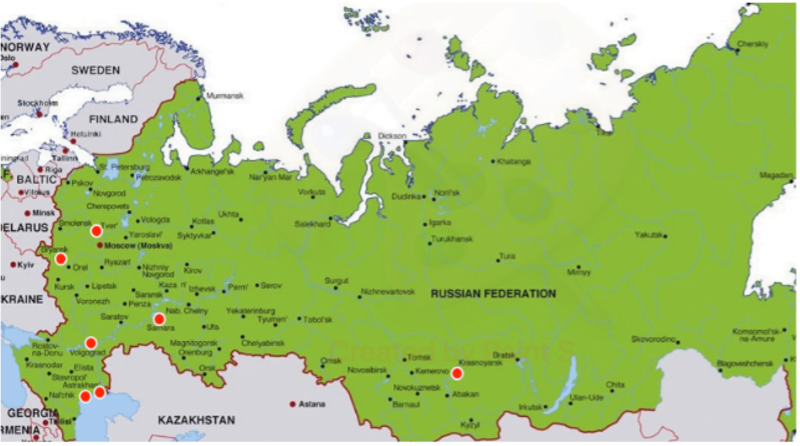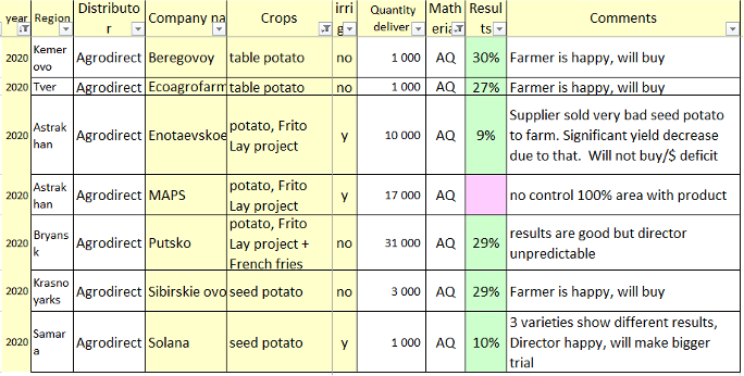 Most of the trials are performed in the South of Russia or in Bryansk region, which is specialized in potato production and are linked with FRITO LAY. Place of trials